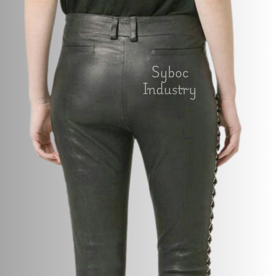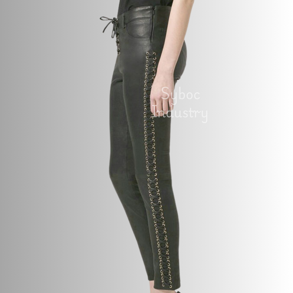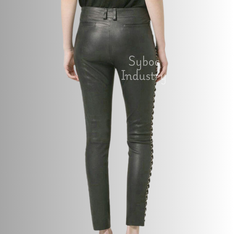Leather Pants for Ladies New Side Laces Style Genuine Sheep Leather Fitted Pants for Women's