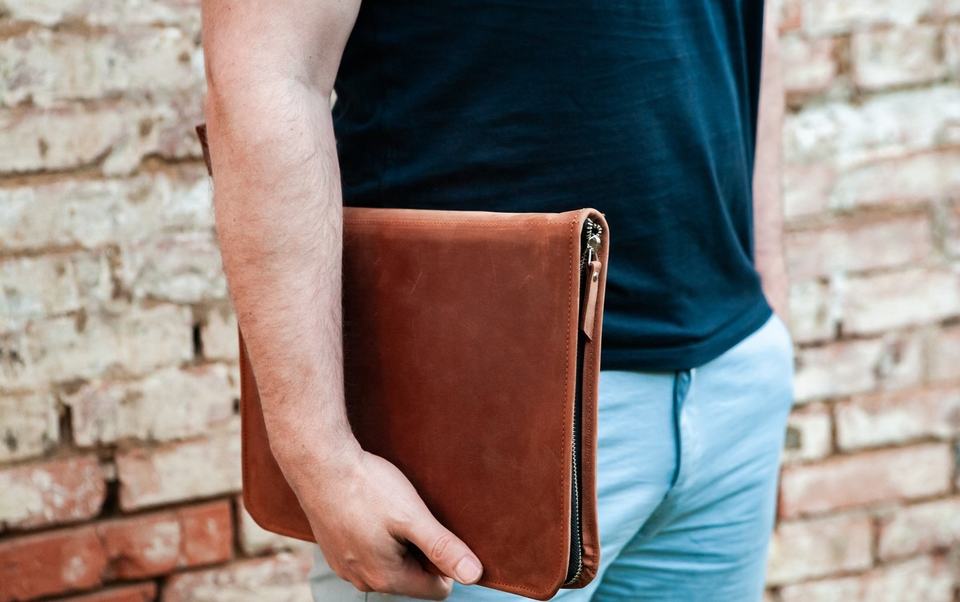 Leather Portfolio for Laptop Personalized Folder A4 Case With Zipper A4 Document Holder Gift for Him LPA-0091