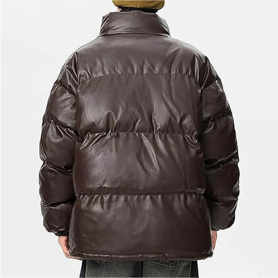 Leather Puffer Women Jacket Winter Stand Collar Jackets Zip Up Packable Jackets Big and Tall Down Coat with Pockets Warm