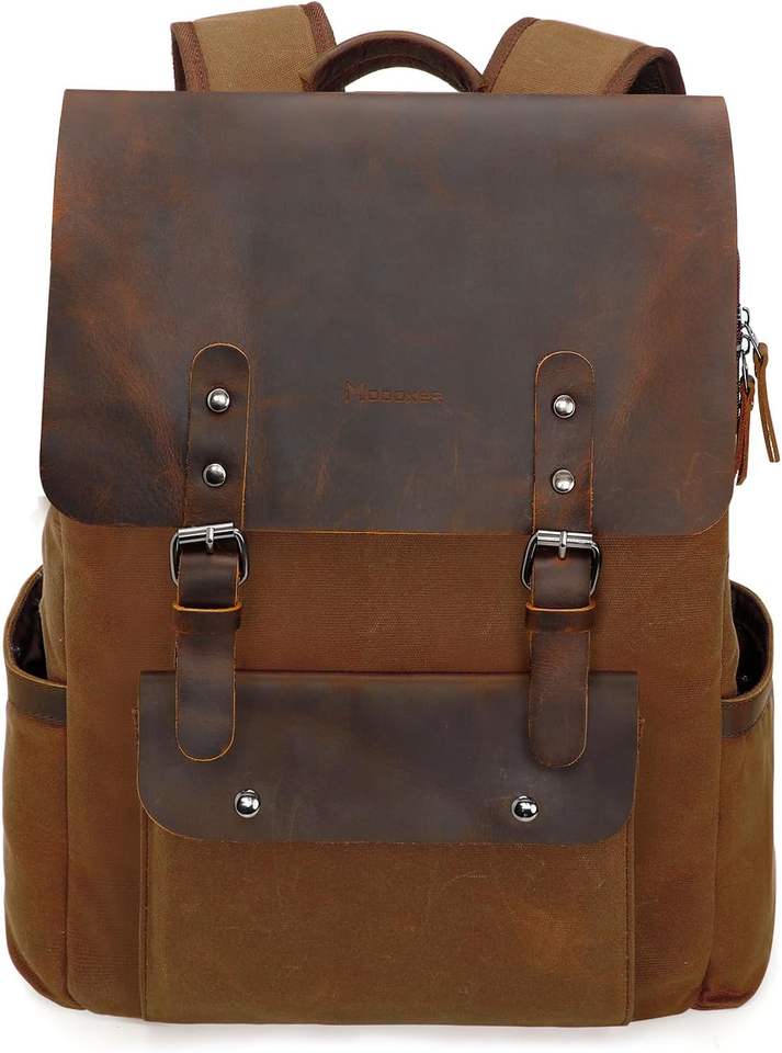 Leather Rucksack Knapsack for Men Woman Vintage Travel Laptop Backpack 15.6 Inch Satchel Backpack, Retro Flap Backpacks