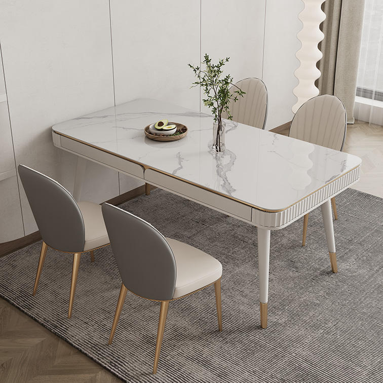 Leather Seat Hot Selling Marble Slate Table Set Luxury Home Decoration Table