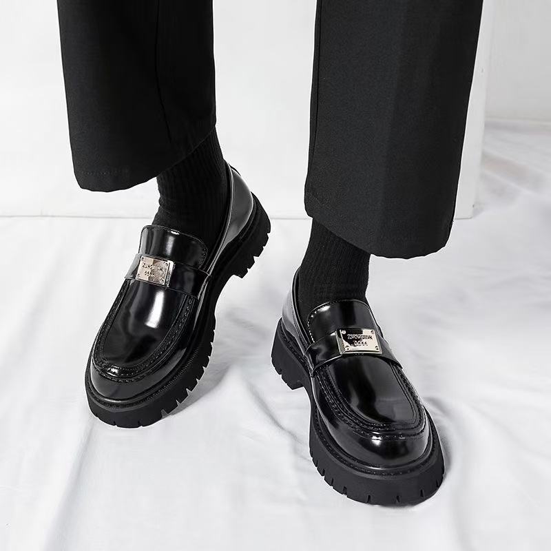 Leather Shoes Men's Head Cover Foot Trendy British Style ins Retro Height Increasing Dress Shoes