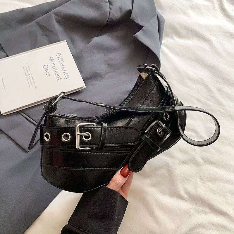 Leather Shoulder Bag with Metal Buckle Underarm Handbag