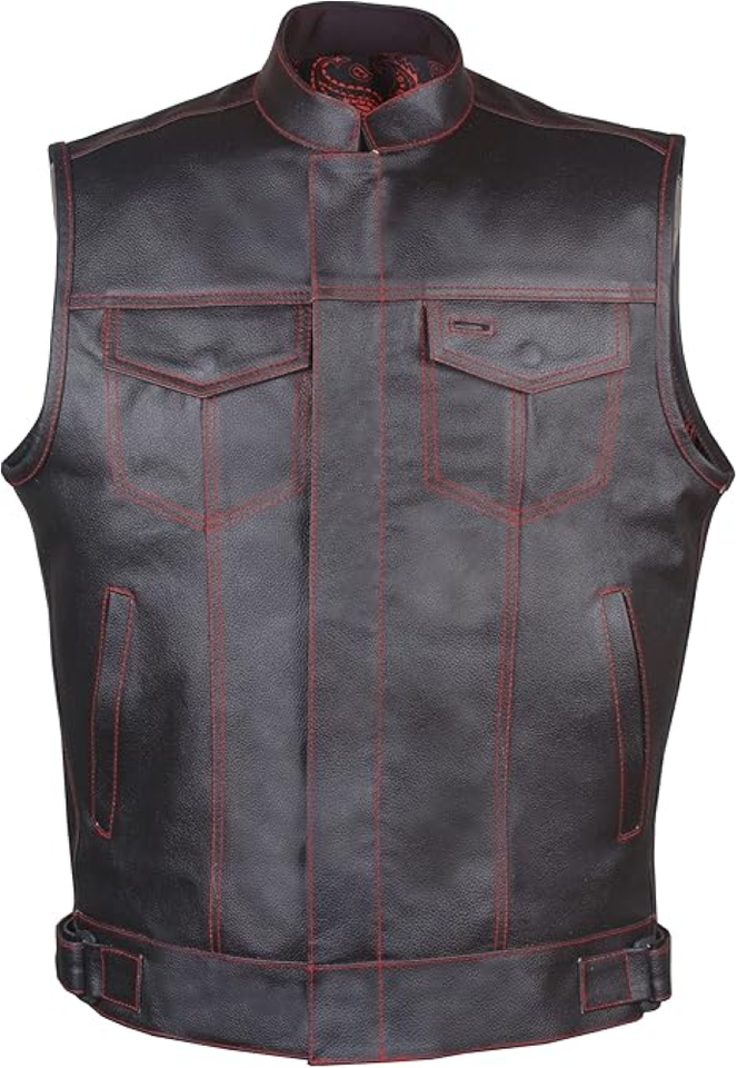 Leather Sleeveless Vest for Men Men's Casual Notched Collar 2 Button Slim Moto Faux Leather Jacket Letterman Jackets