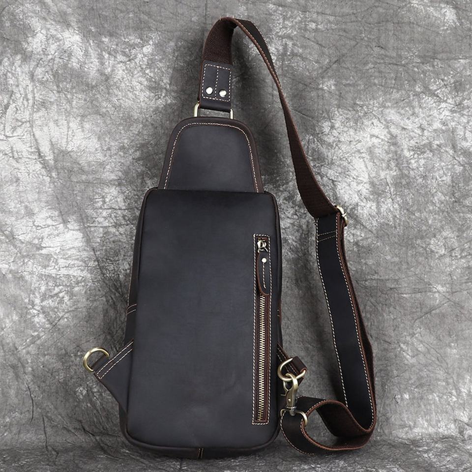 Leather Sling Bag Men Minimal Style Practicality Combined Logo Elegant Chest Bag Gift Him Father Husband LCB-0033B