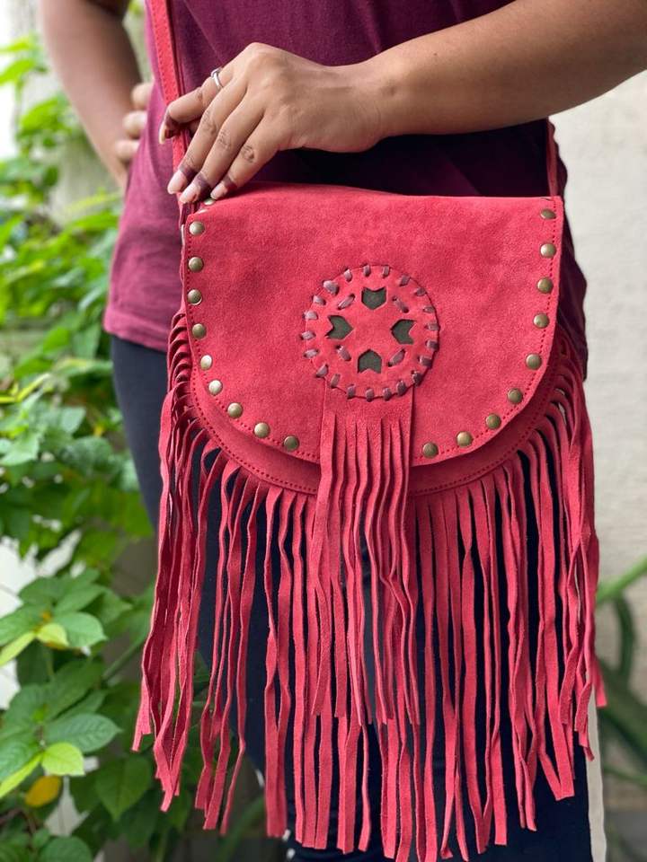 Leather Sling Bag Suede Leather Fringe Handbag Stylish Bags Unique Satchel Bag