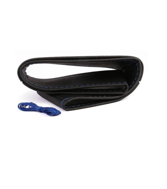 Leather Steering Wheel Cover with Stitching Plain Model Blue Color.