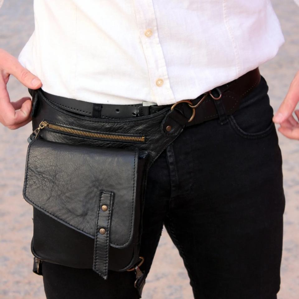 Leather Travel Bag Belt Hip Festival Biker Harness Leg Strap Biker Motorcycle Bum Vintage Steampunk LLB-0046