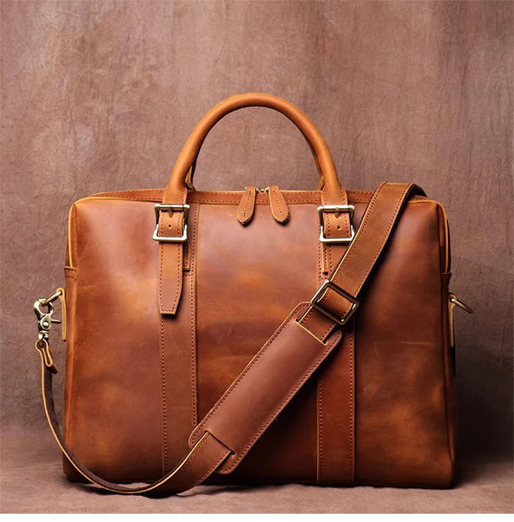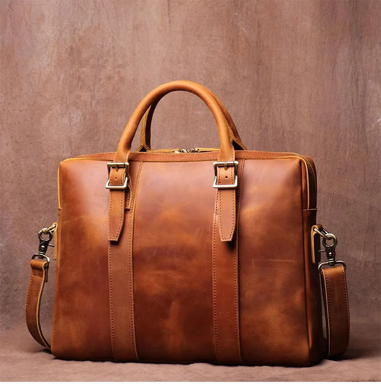 Leather Travel Laptop Bag 16 inch Durable Genuine Leather Bag with Adjustable Strap Business Laptop Bag for Men & Women