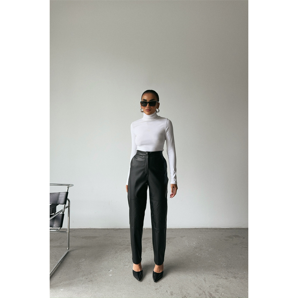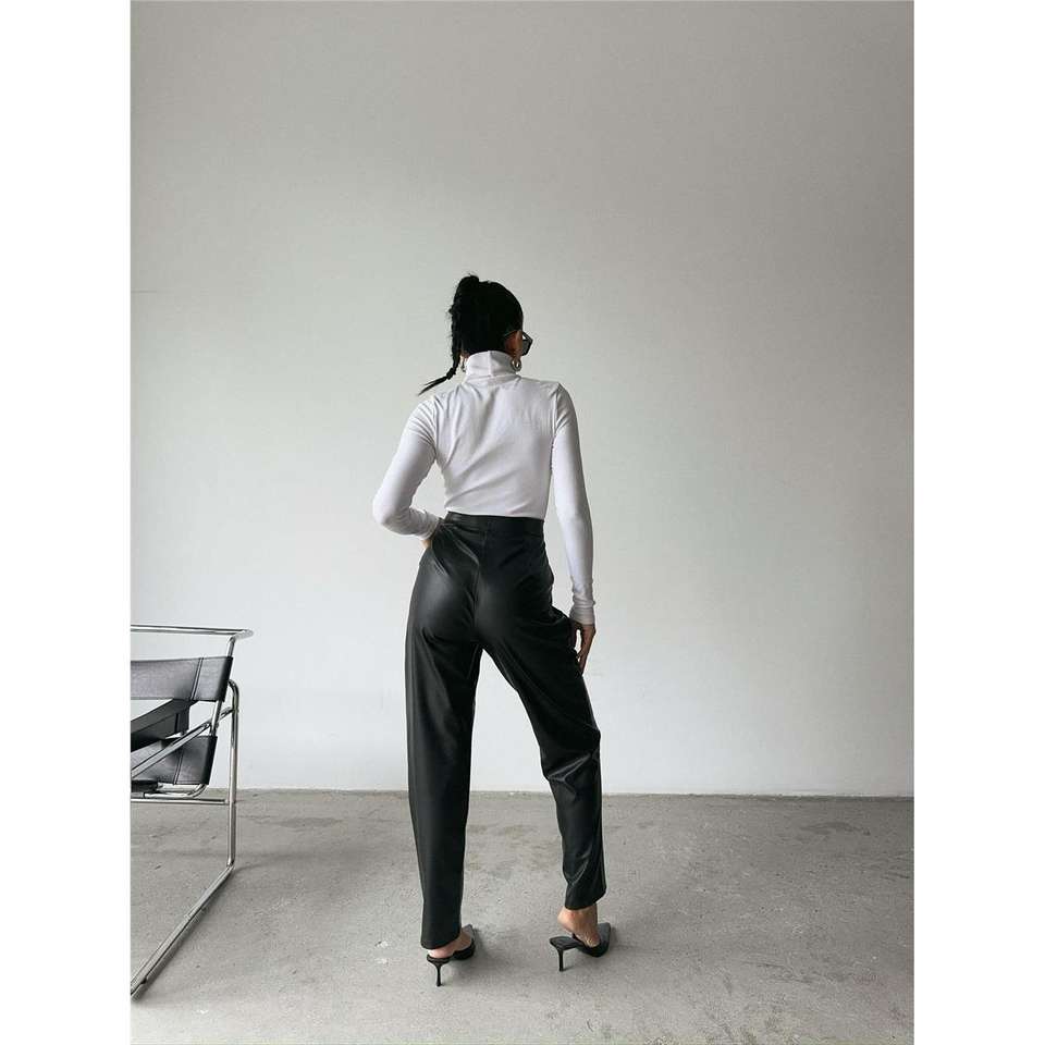 Leather Trousers Straight High Waist Black Pu Fabric Women's Pants