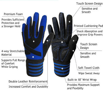 Leather Weight Lifting Gloves Gym Workout Full Finger Touch Screen Breathable Lightweight Anti Slip Hook Loop Closure Padded