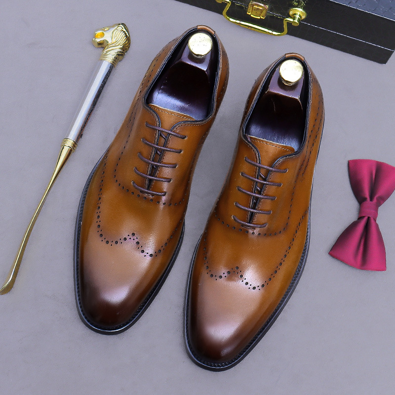 Leather boots business formal wear men's leather shoes English brogue leather office shoes high-end men's dress leather shoes