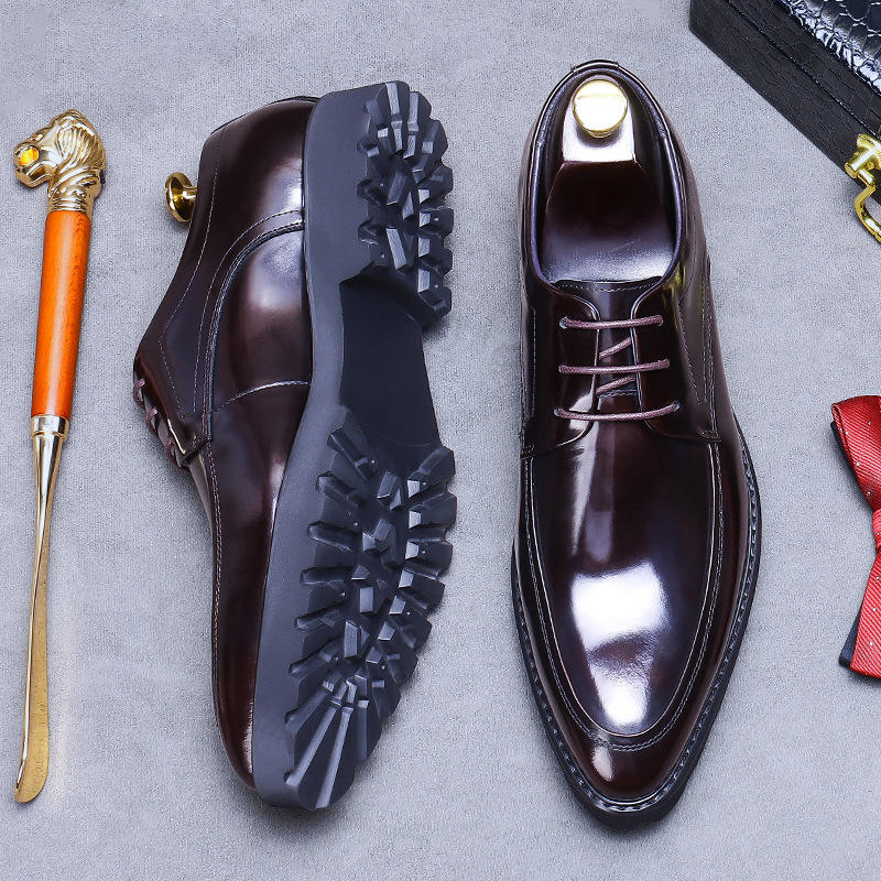 Leather lace-up pointed-toe breathable lightweight anti-slip business dress shoes for men in 2026, luxurious style.