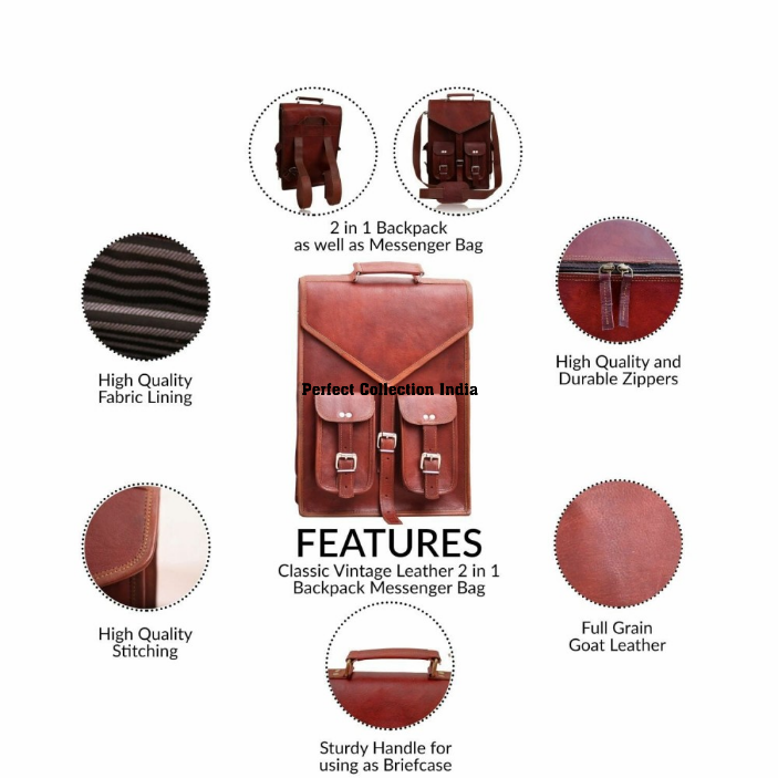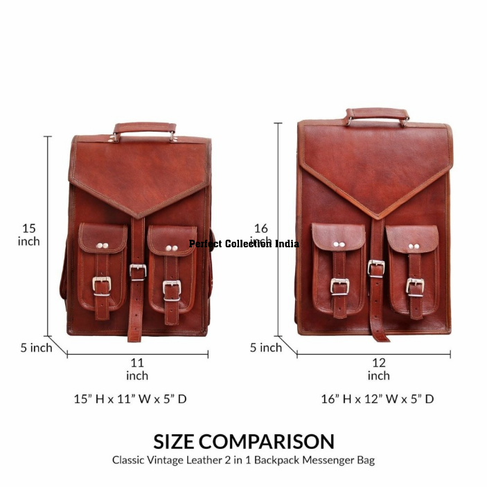 Leatherclue Classic Vintage Leather 2 in 1 Backpack Messenger Bag/Classy and Vintage Looks Leather Bag for Biker and College Bag
