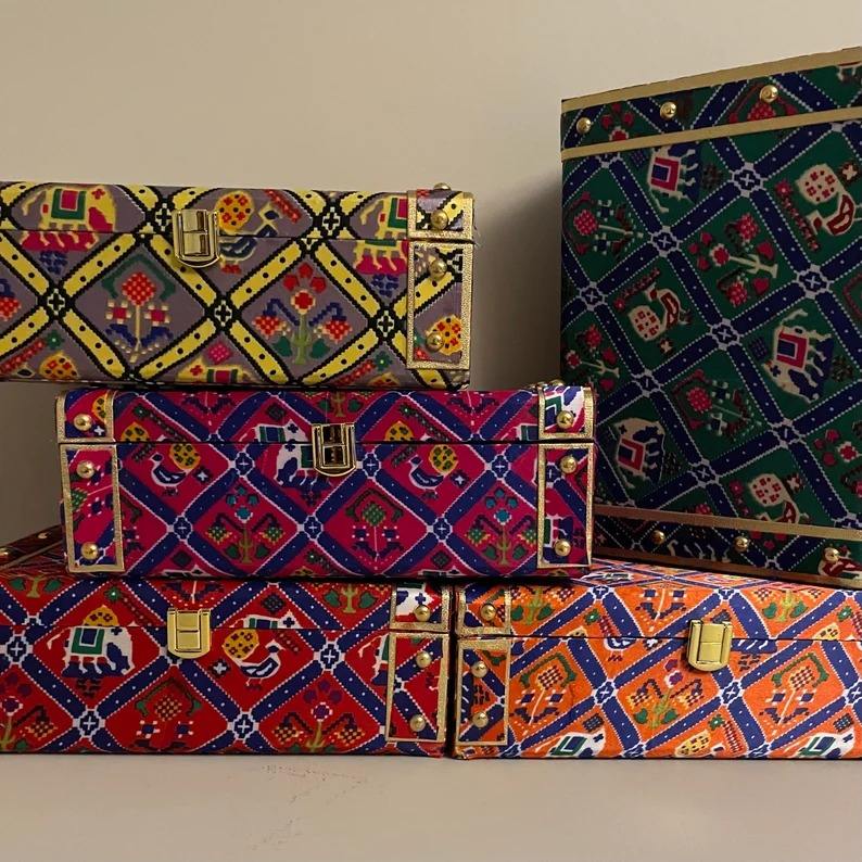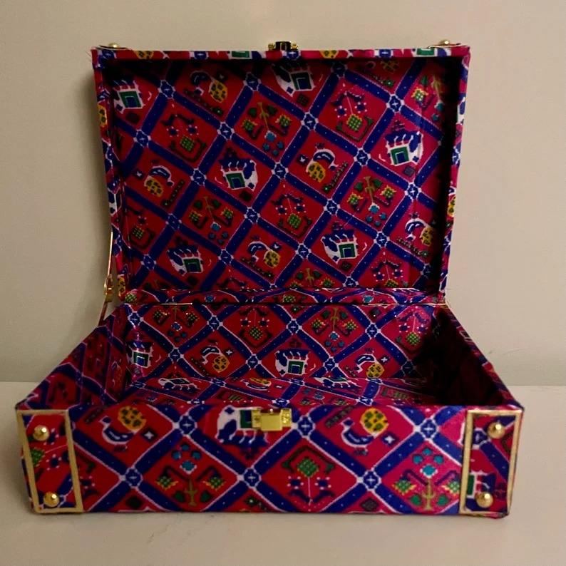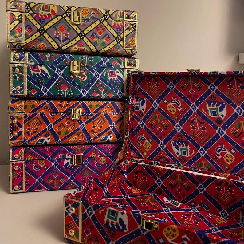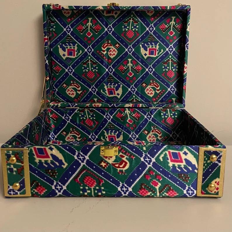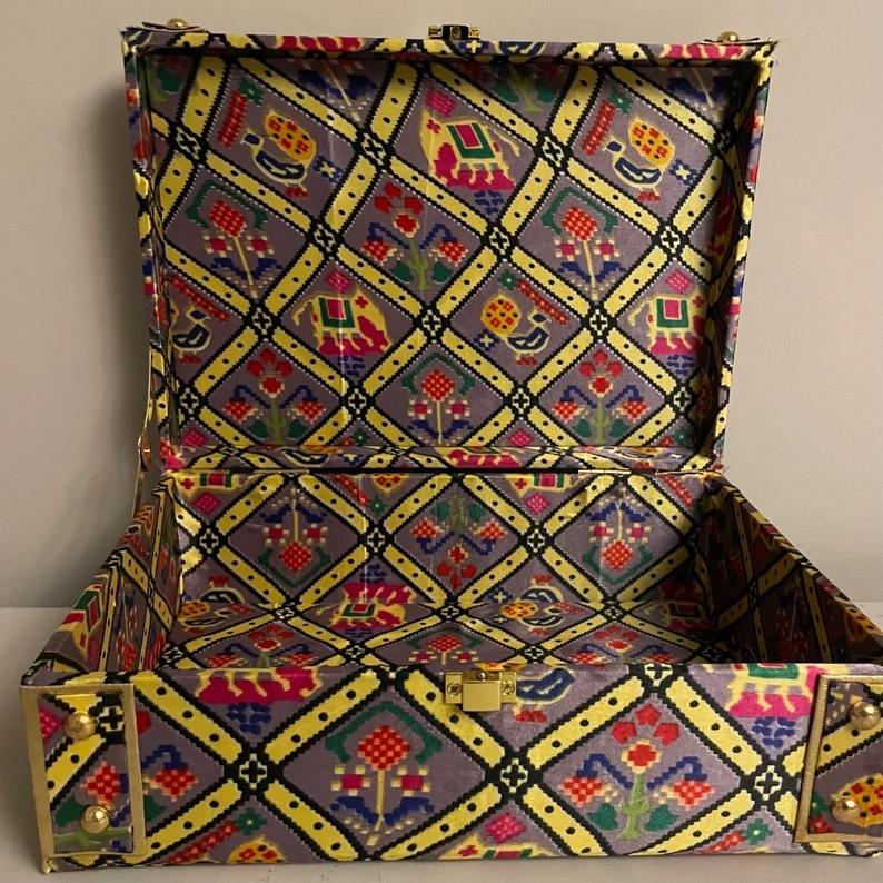 Leatherette Patola Print Design Trunk Box Gift Boxes For Wedding Birthday Return Hampers Eid Ramadan Diwali Gifting Storage Box