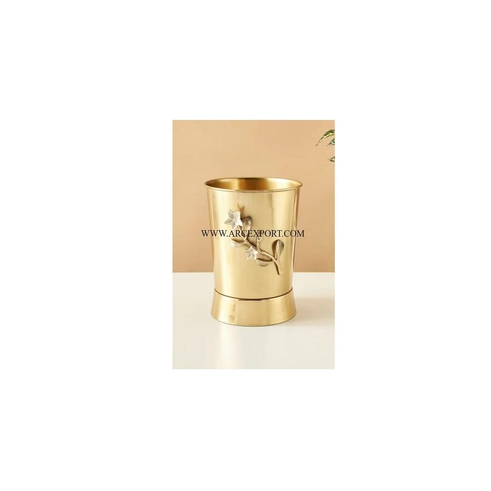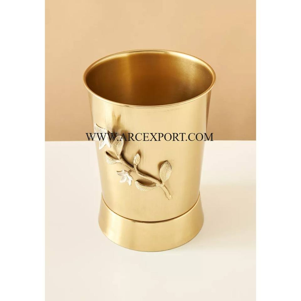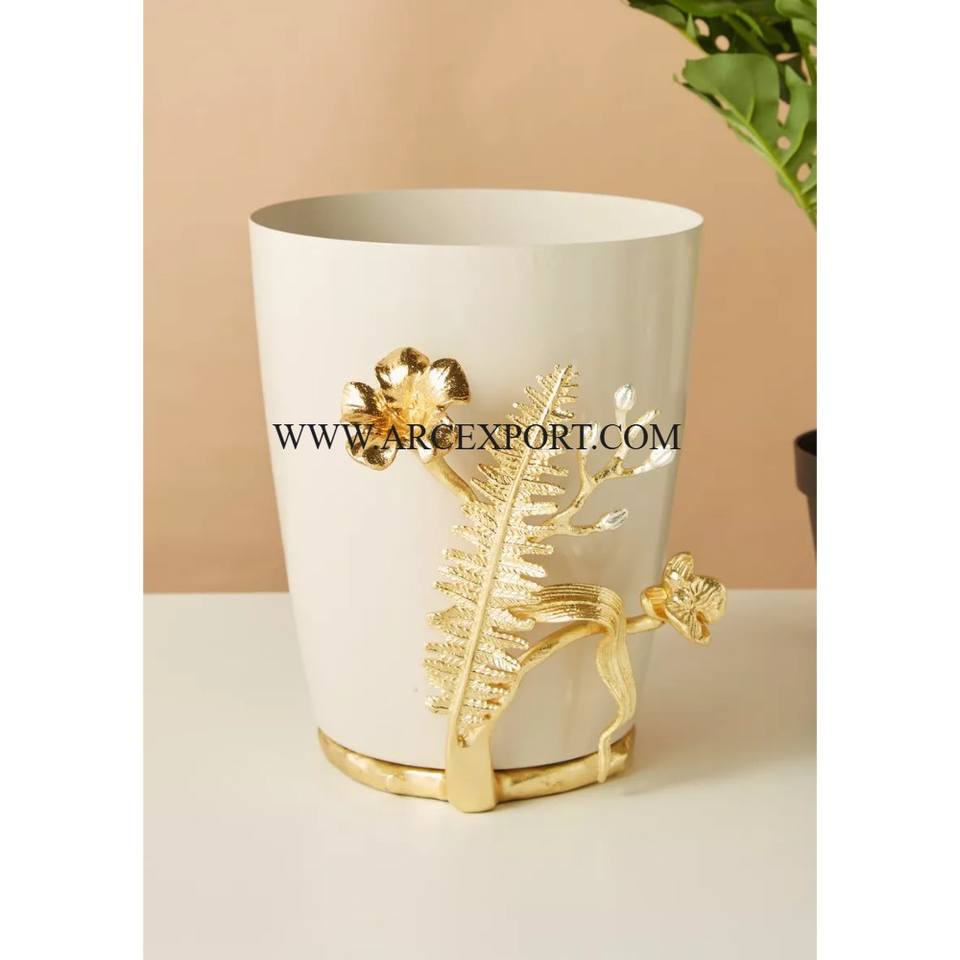 Leaves Flower Designer Gold Plated Metal Brass Luxury Garbage Trash Can Waste Bin Top Quality Hot Sale Household Dust Bin