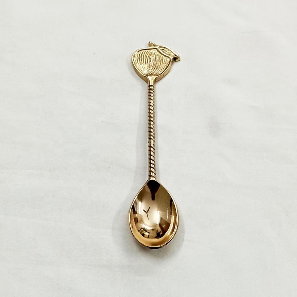 Leaves & New Fruit Ended Handmade Handle Kitchenware Accessories Brass Gold Plated Spoon With Brass Embossed Novelty Spoon