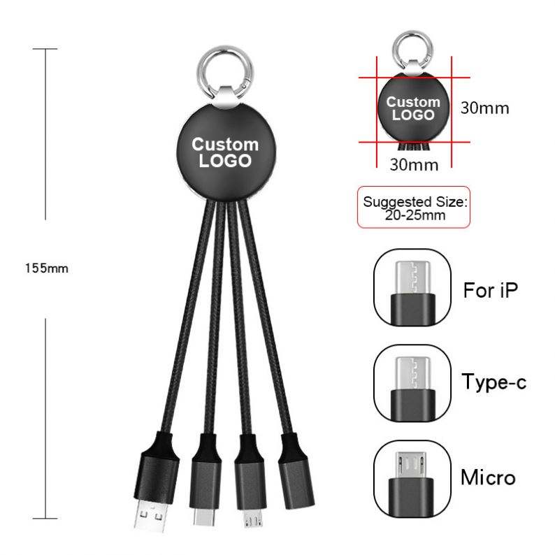 Led 3-In-1 Short Charger Type-C Usb 15Cm Mobile Phones Electronics Cord Gift 3 in 1 Charging Cable Logo Ready to Ship
