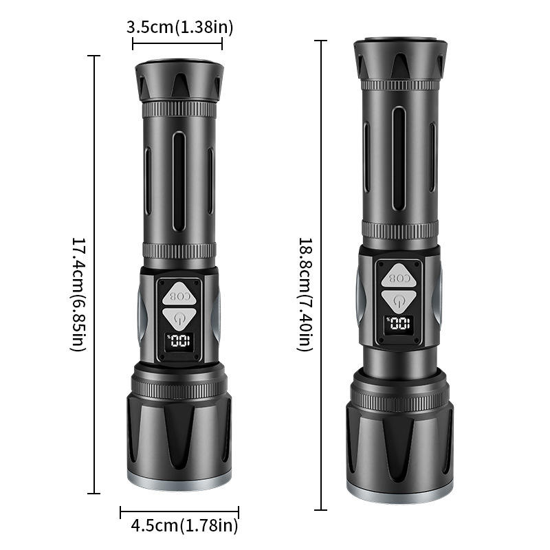 Led Flashlight Rechargeable Digital Display High Brightness White Light Outdoor Use