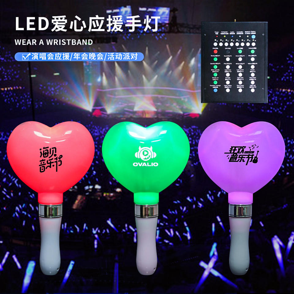 Led Heart Shape Cheer Light Remote Control 15 Colors Milky White Electroplated Handheld Glow Stick For Concert Party