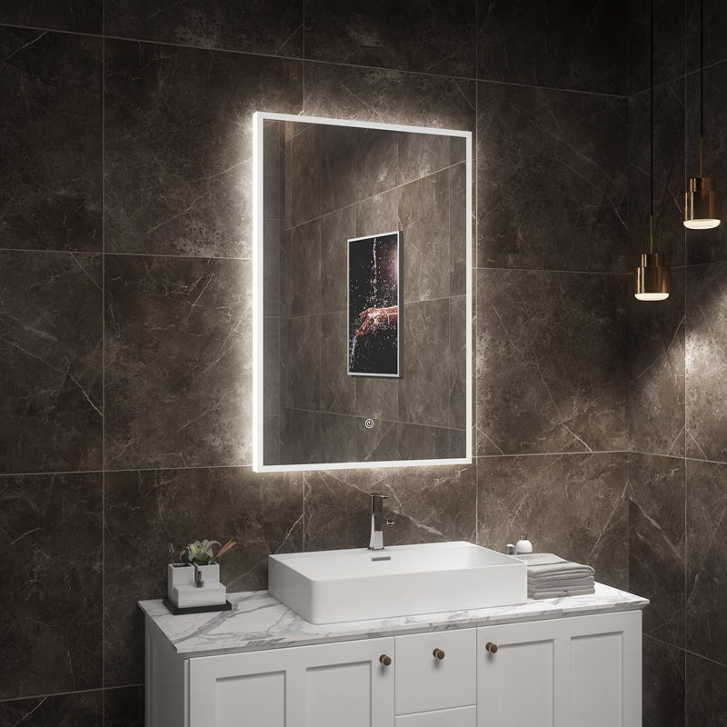 Round Black Frame Vanity Mirror with LED and Smart Touch