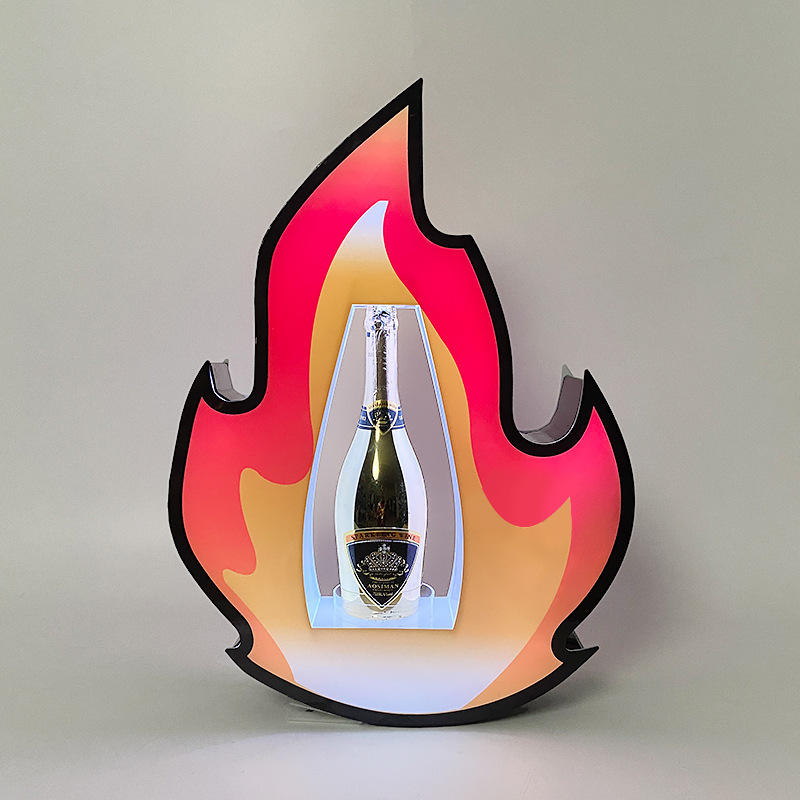 Led Lighted Flame Wine Rack Acrylic Seven Color Changing Remote Control Party KTV Bottle Holder Charging Base