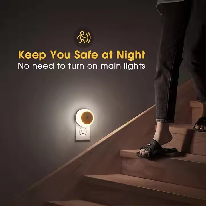 Led Night Light Smart Night Sensor Round Plug in Wall Night Lamp Bathroom Home Kitchen Hallway Staireway Bedroom Nightlight