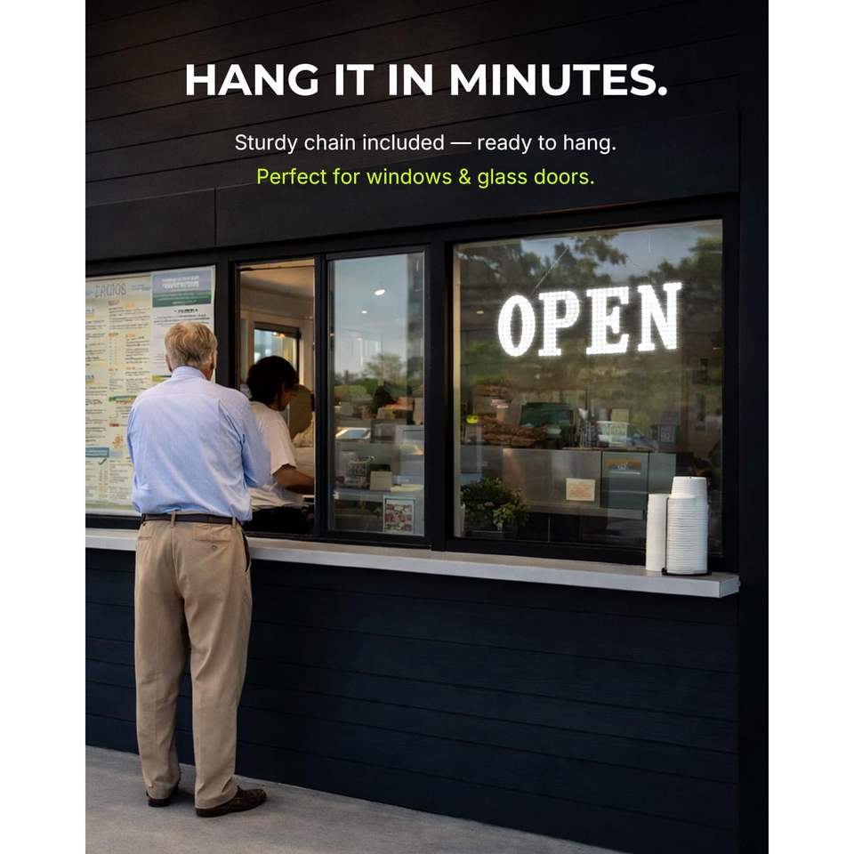 Led Open Sign 30x10 Inch Super Bright White Led Display For Retail Store Window Hanging Installation