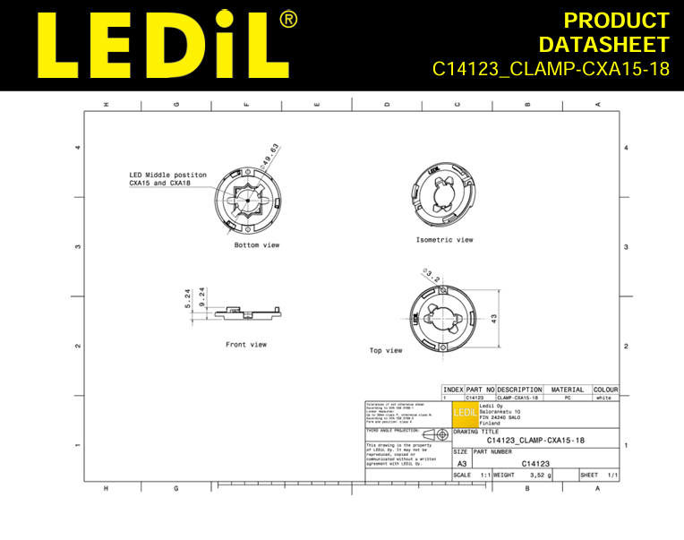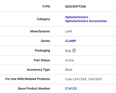 LEDils C14123_CLAMP-CXA15-18 PMMA Round LED Lighting Lamp Base for Crees CXA15