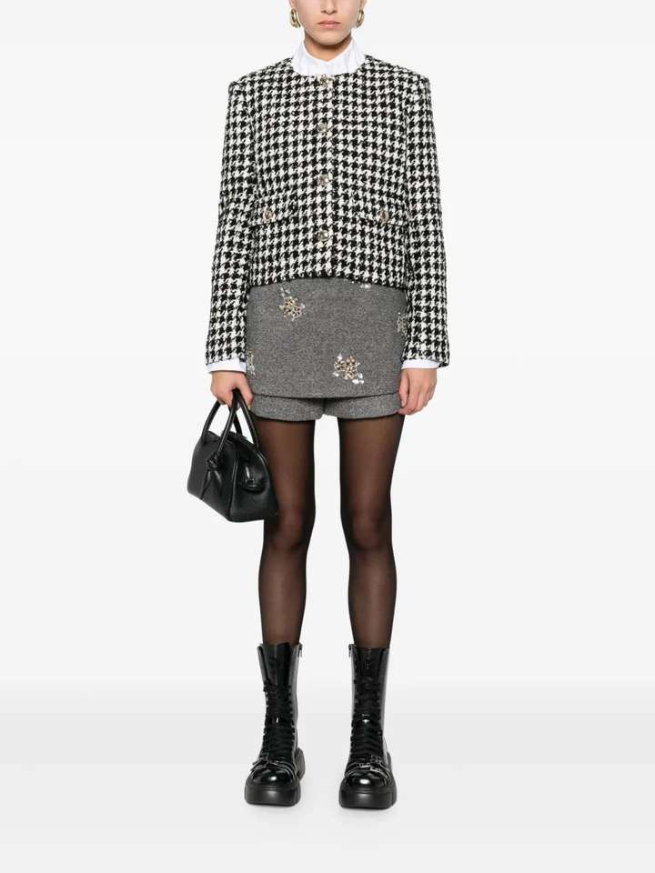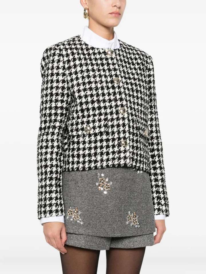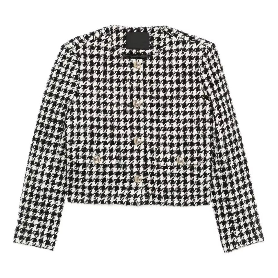 Leduo Customized Classic Houndstooth Cropped Jacket – Pocket Detail Long Sleeve Outerwear