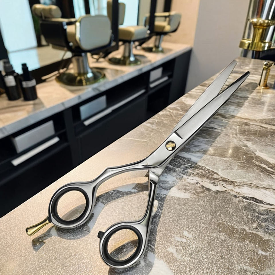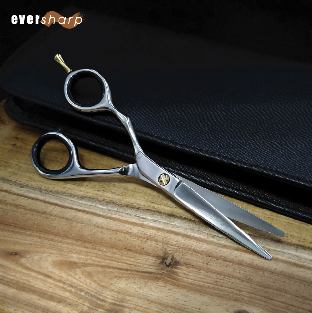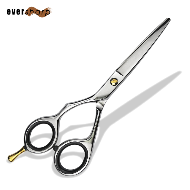 Left-Handed Convex Beauty Scissors Stainless Steel Handle Sharp Straight Blade Mirror Polish Offset Handle Cutting Barbers' Use