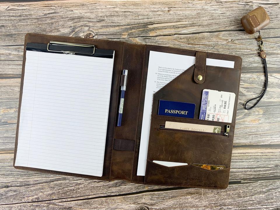 Left-handed Leather Portfolio Document Organizer Holder With Clipboard Business Professional Folder Anniversary LPA-0068