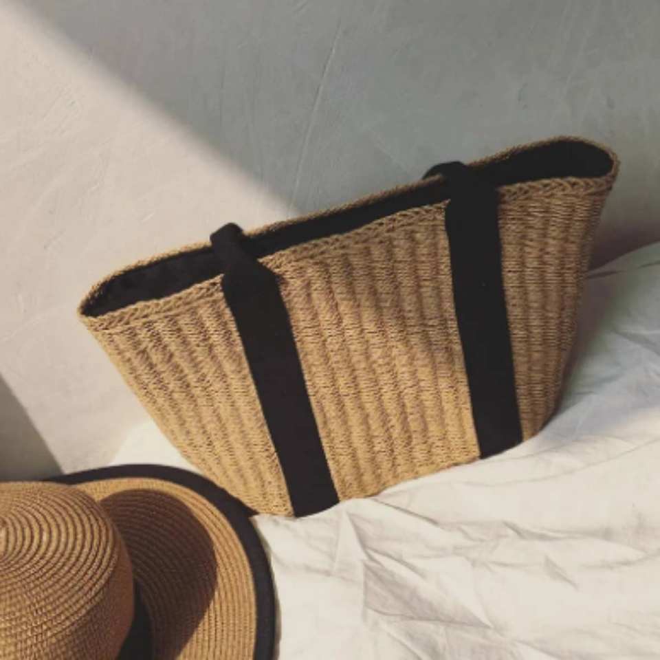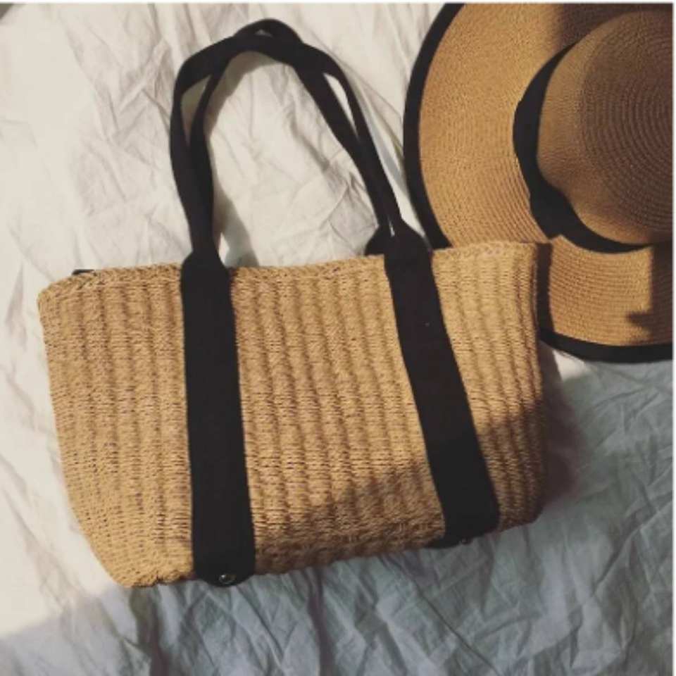 Leisure Style Shopping Bag Bohemian Basket Weave Bag with Island Designs Straw Beach Bag Rattan Tote Handbag