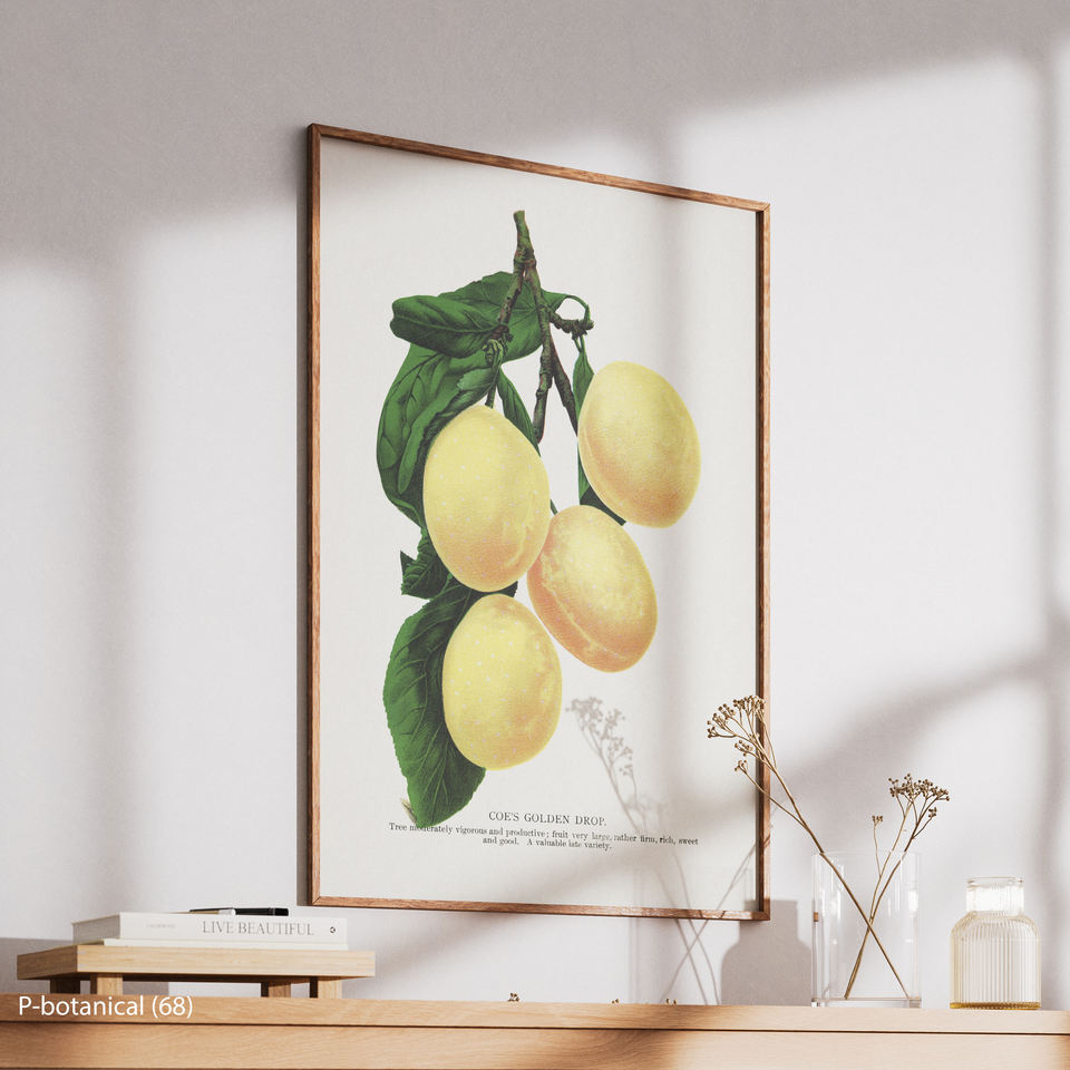 Lemon Branch Botanical Wall Art Modern Citrus Fruit Illustration Canvas Print with Wood Frame Home Decor