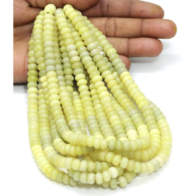 Lemon Jade Rondelle Beads: AAA Smooth Gemstone, 7-8mm