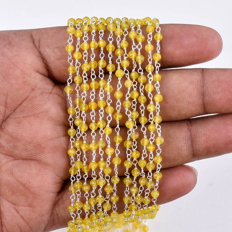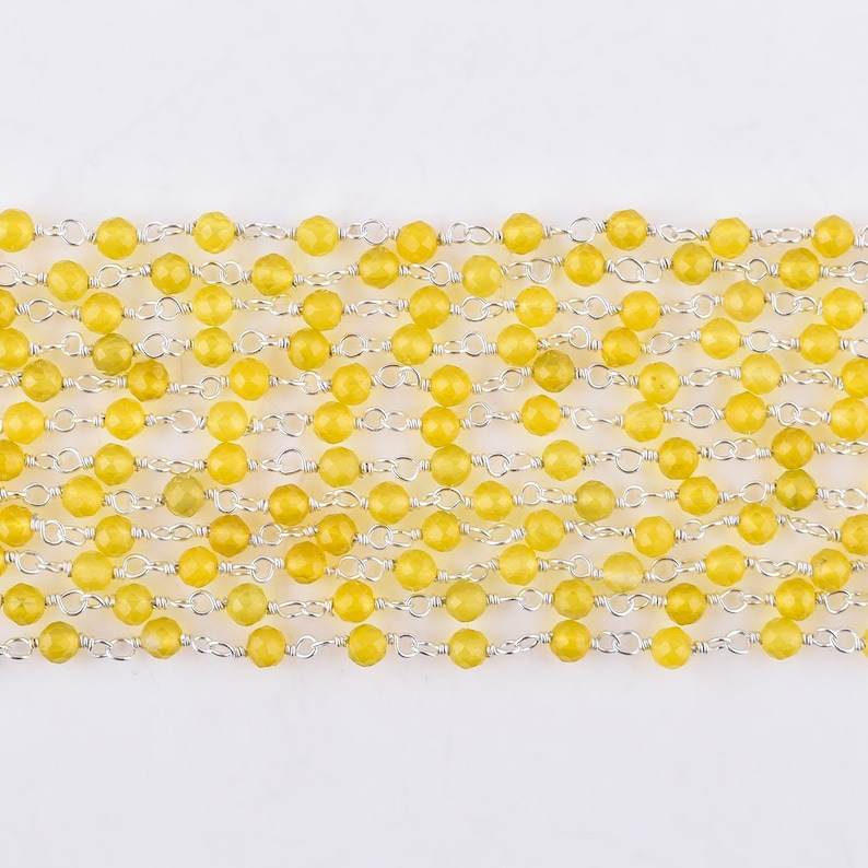 Lemon Quartz 3mm Faceted Round Beads Sterling Silver Rosary Chain for Jewelry Making Wire Wrapped Chain by Indian Manufacturer