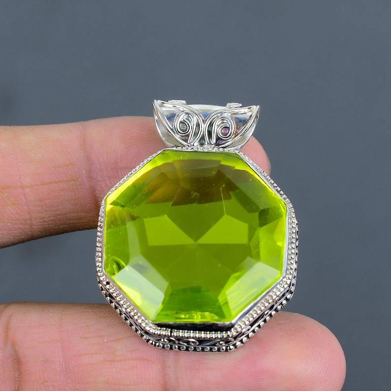 Lemon Topaz Gemstone Handmade 925 Sterling Silver Octagon Pendant Natural Jewelry Gift For Women