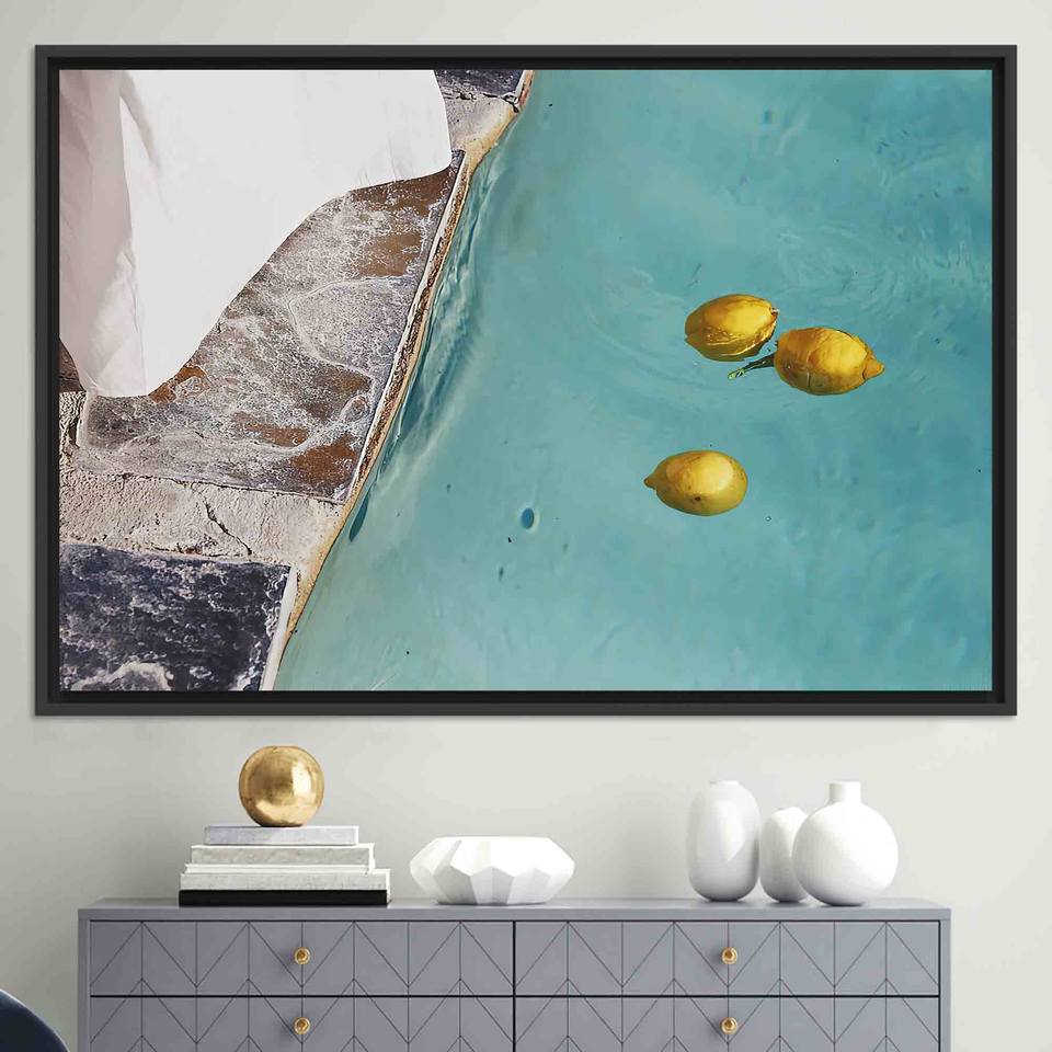 Lemons Swimming Pool Canvas Art: Boho Living Room Wall Decor,BLACK FRAMED CANVAS