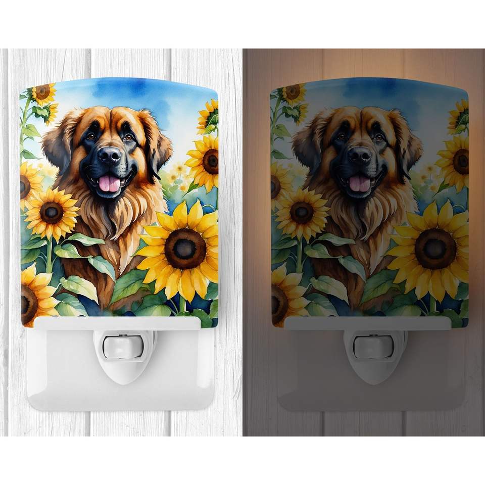 Leonberger Sunflowers Ceramic Night Light UL-Certified Compact 6x4x3 Multicolor for Bedroom Bathroom Nursery Hallway Kitchen