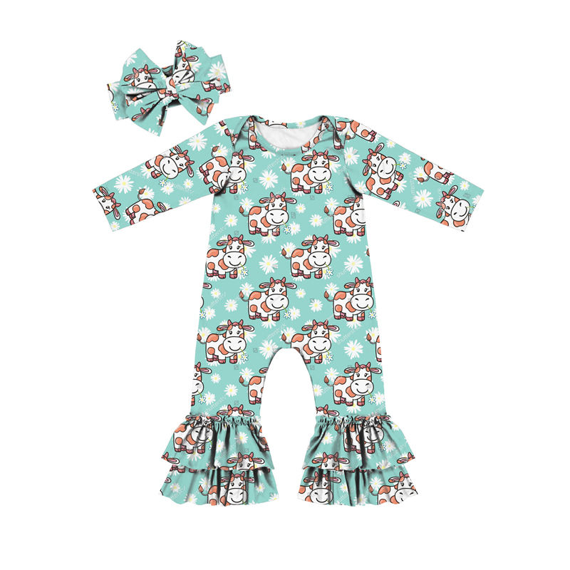 Leopard Cheetah Custom Prints Girls Ruffle Jumpsuit Long Sleeve Autumn Toddler Ruffle Romper Clothes Fall Jumpsuits for Baby