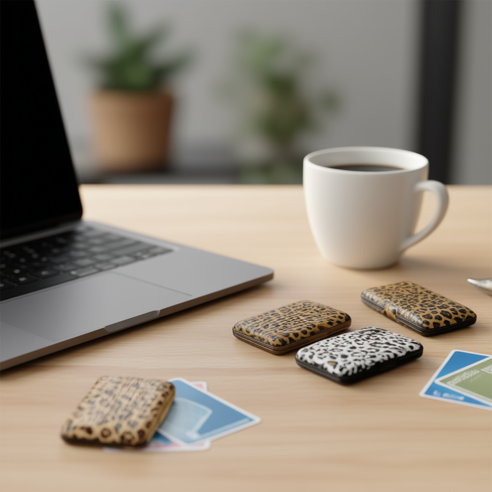 Leopard Pattern Card Holder 7 Inch Synthetic Leather Zipper Closure Compact Wallet For Credit Cards