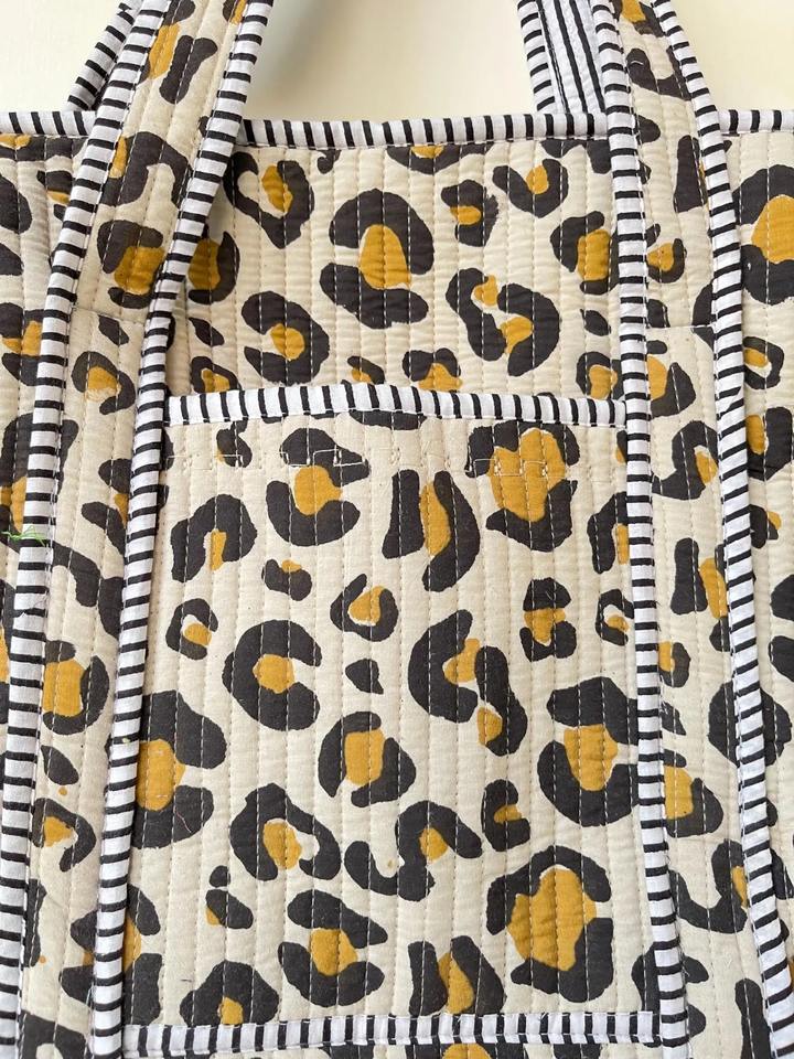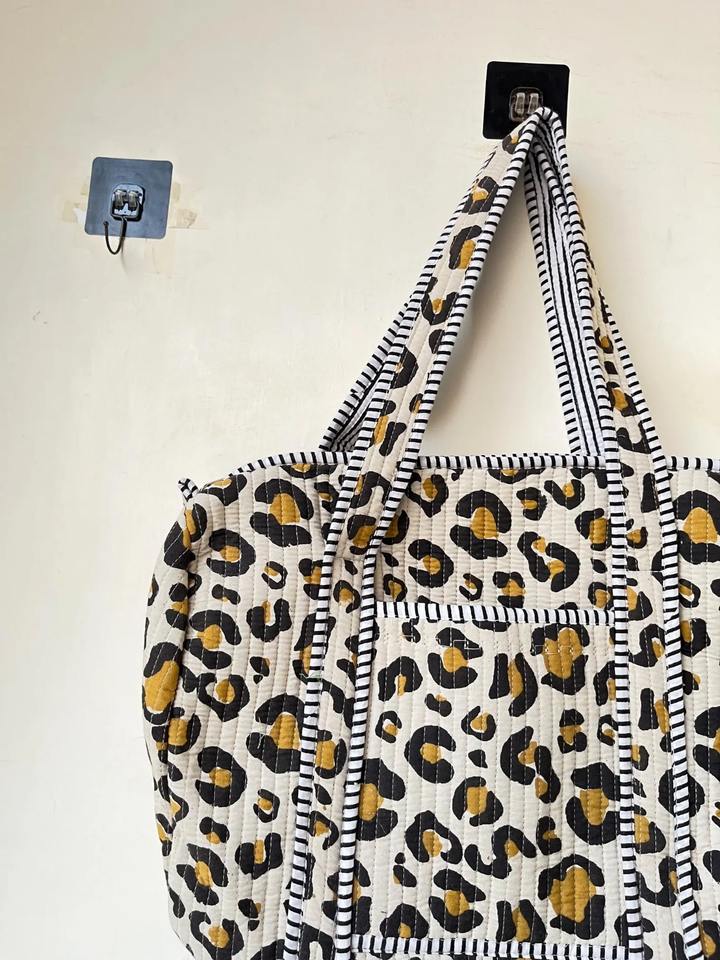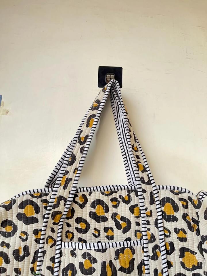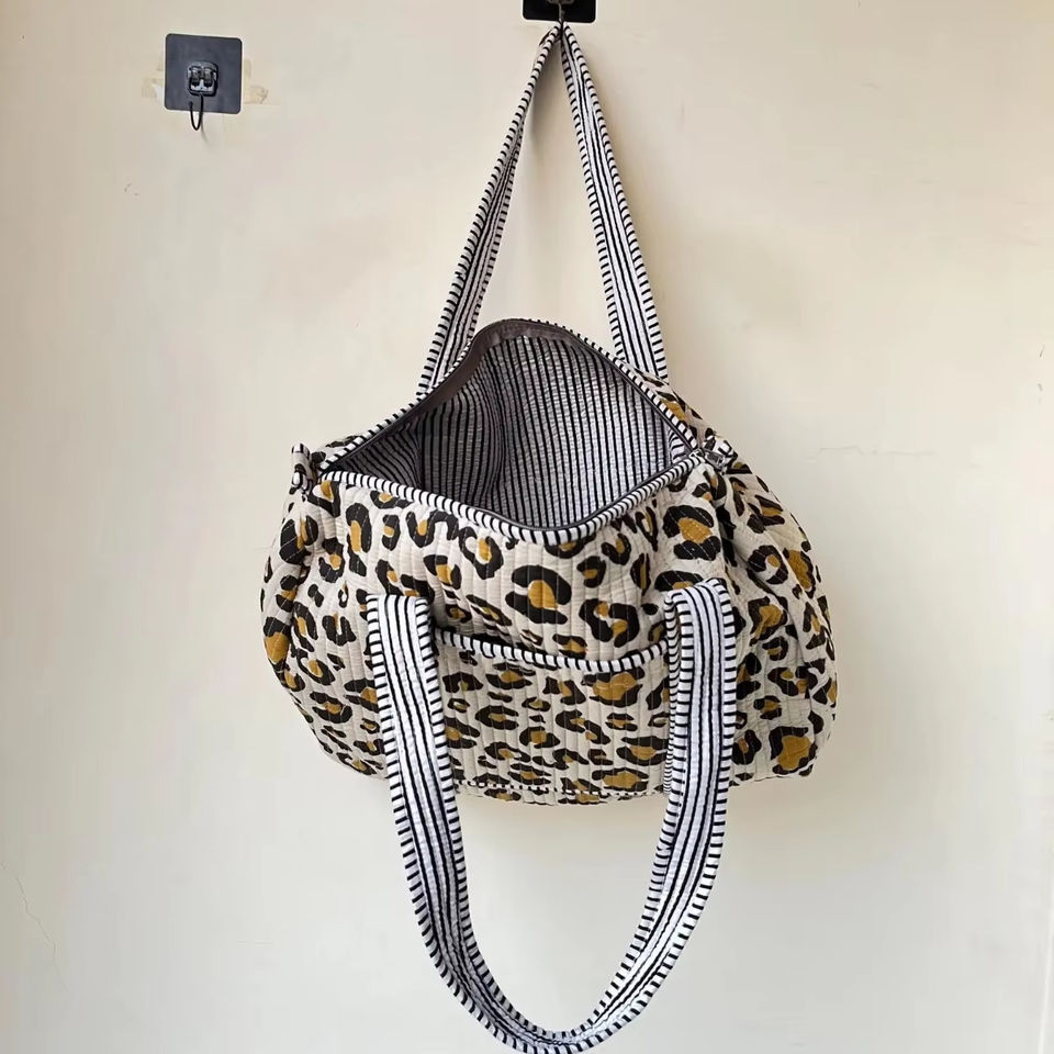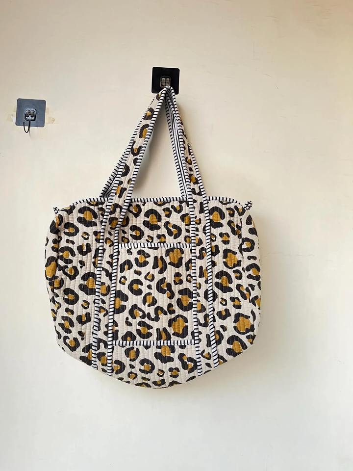 Leopard Print Duffle Bag Indian Boho Block Print Quilted Bag Travel Bag Handmade Shoulder Purse Large Weekender Bridesmaid Gift