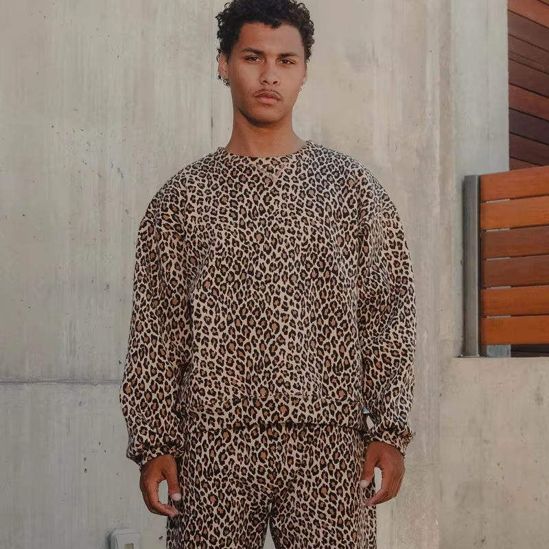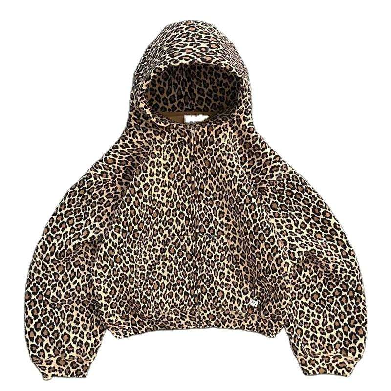 Leopard Print Oversized Zipper-Up Hoodie Men Streetwear Casual Loose 100% Cotton Customized Logo Winter Sweatshirt