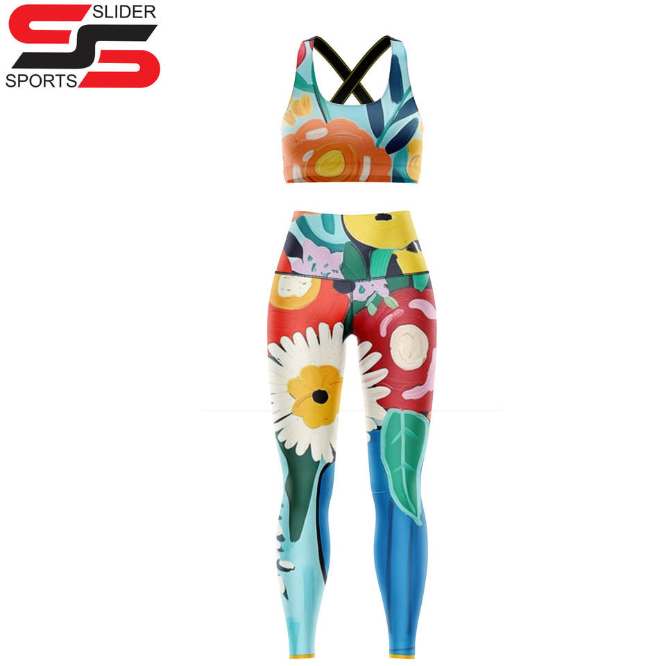 Leopard Printing Quick Dry Sports Yoga Set Custom Logo Sleeveless Sports Bra Yoga Leggings Waterproof Activewear