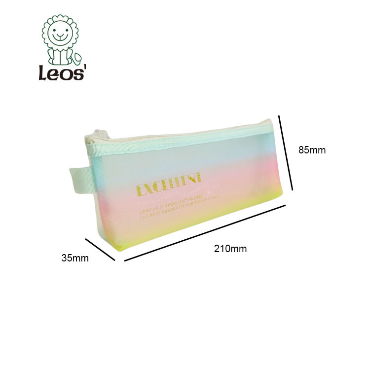 Leos' Aesthetic Gradient Nylon Mesh Zipper Pencil Pouch Custom Logo New Product Makeup Bag Cosmetic Pouch for School Office Use