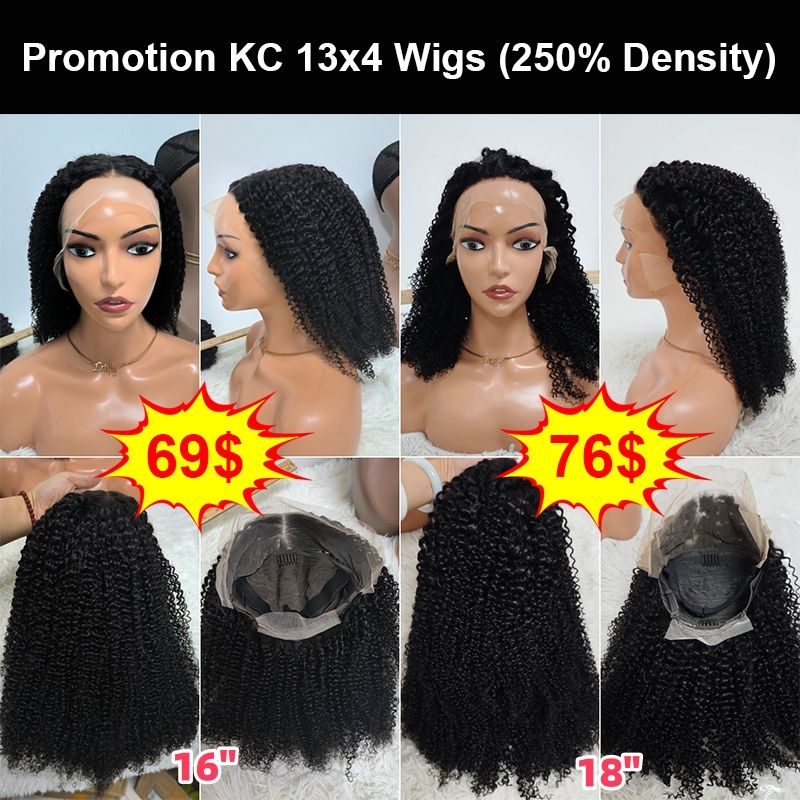 Letsfly 69$ Promotion Kinky Curly 16inch 13X4 Lace Full Frontal 100% Human Hair Wigs 180gram 200% Curly Bob Wigs 10A Wholesale