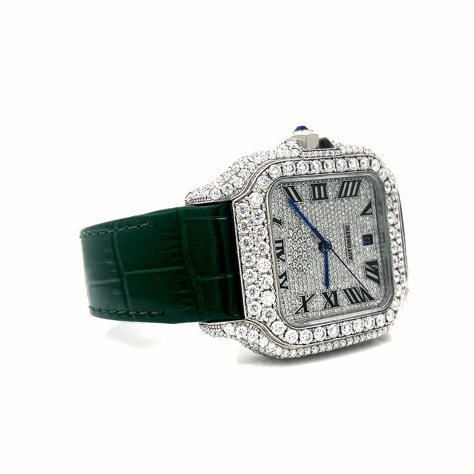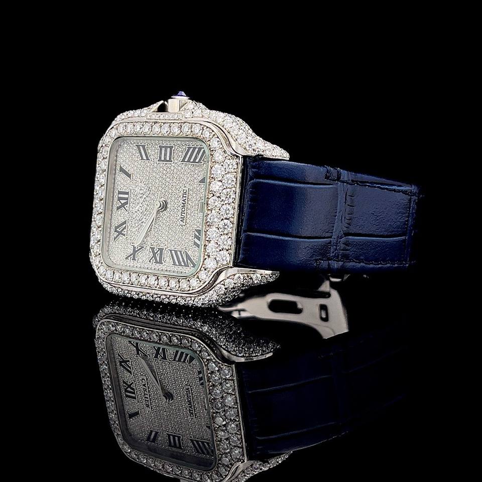 Lettar Luxurious Ronda Mechanical Analog Watch with Black Mina Plating Full White VVS Diamond & Moissanite