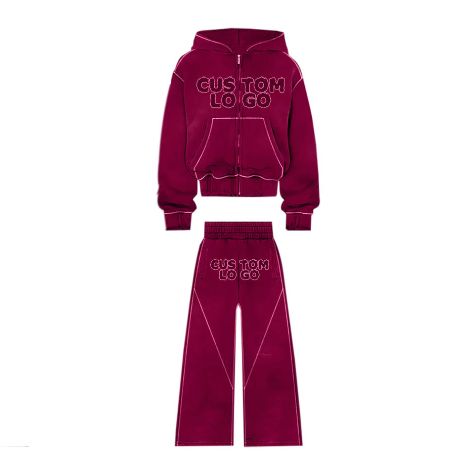 Letter Print Embroidery Distressed Tracksuit Loose Fit Pullover Zip up Unisex Hoodie and Jogger Set in High Quality OEM