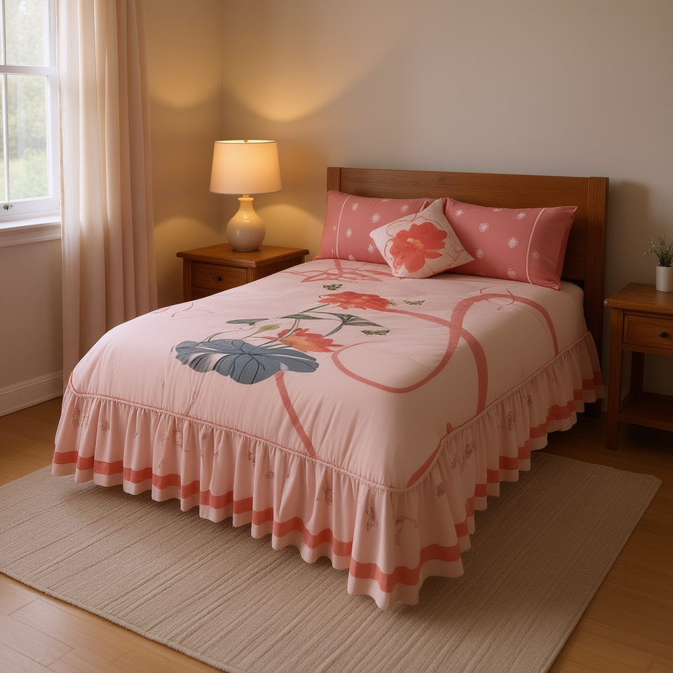 Lety Double Quilt Matrimonial Size Floral Embroidered Classic Style All Season Home Bedding