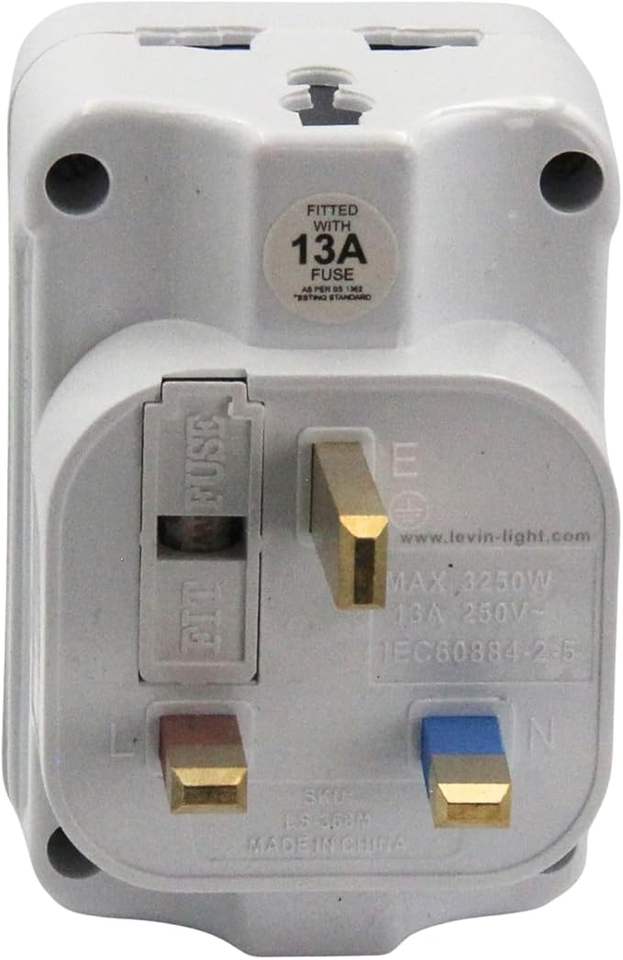 Levin Germany Compact 3-Way Power Adapter Durable AC Neon Indicator Fire-Resistant PC Plastic Copper Hardware 2-Year Warranty